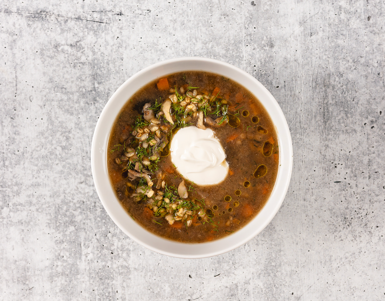 Our take on a classic, this hearty soup combines locally grown oyster mushrooms, chewy toasted barley, carrots and plenty of fresh dill in a rich, homemade mushroom broth.