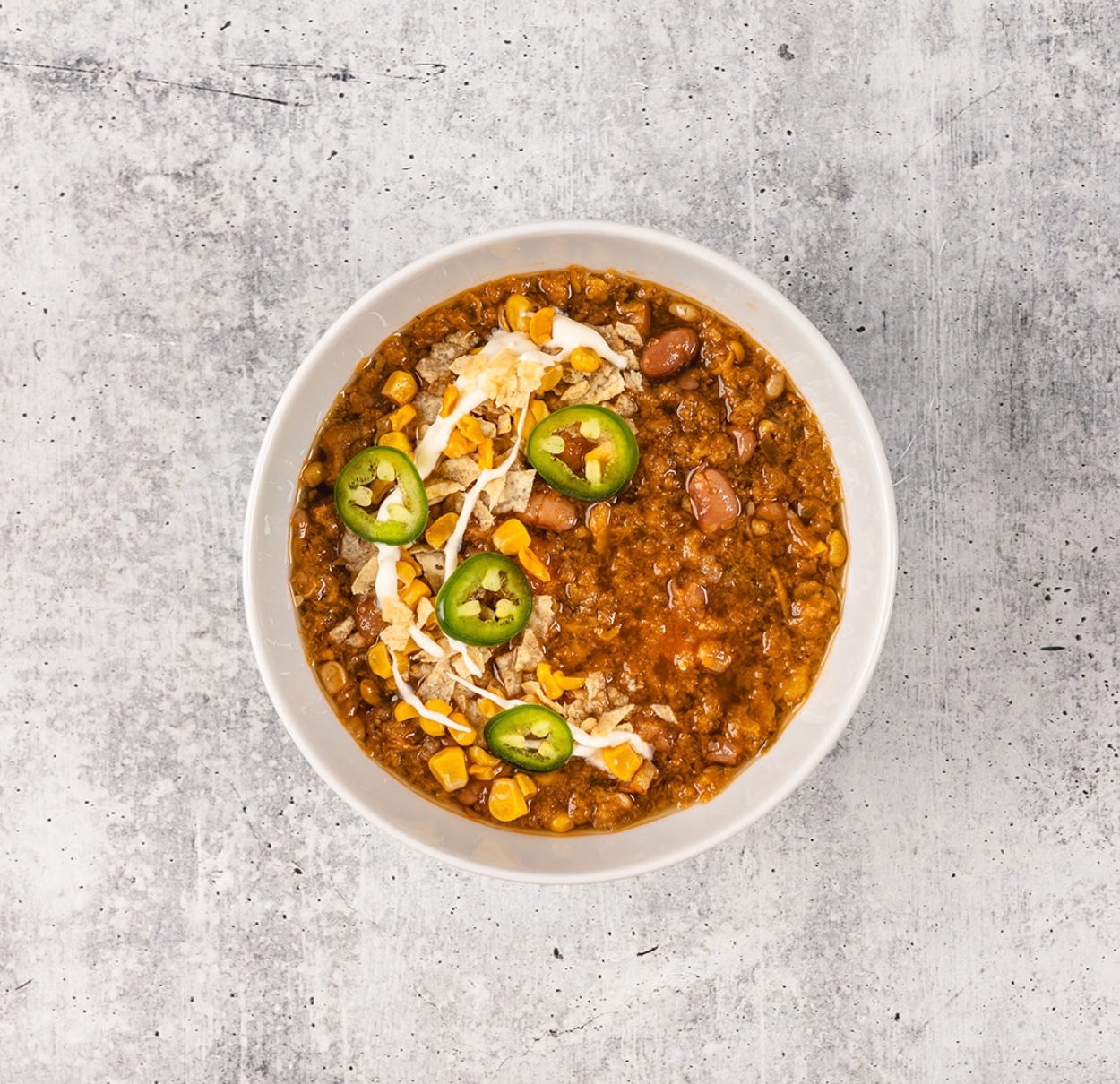 This spicy, tortilla-style soup is amped up with pinto beans, hatch green chiles, carrots and corn. Dress it up however you like with avocados, green onions, sour cream, or your favorite salsa.